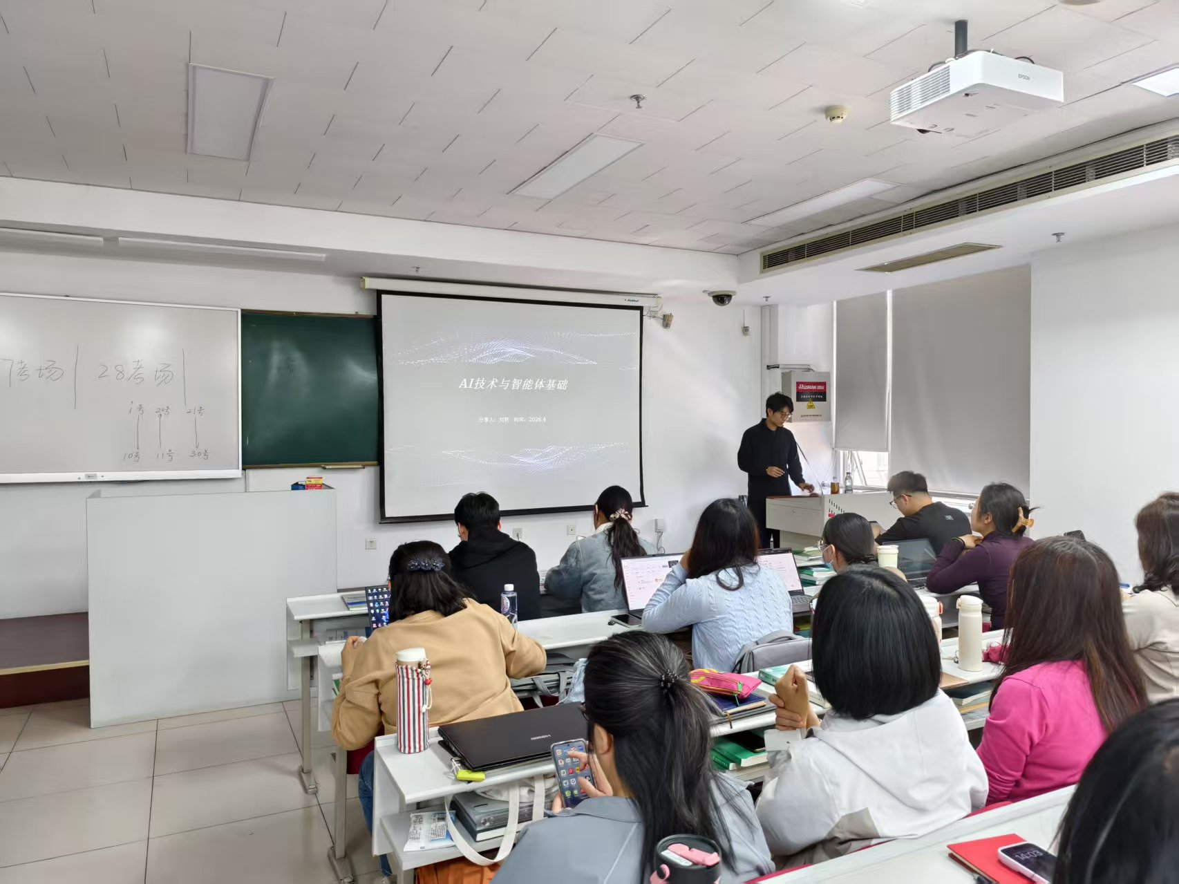 2026年4月20日下午教务处主办的AI智能体应用专题培训。本次培训由教务处副处长温克主持,特邀超星集团刘轩老师主讲,主题为“AI智能体技术场景化应用与实操落地”。共有近百人参加培训,